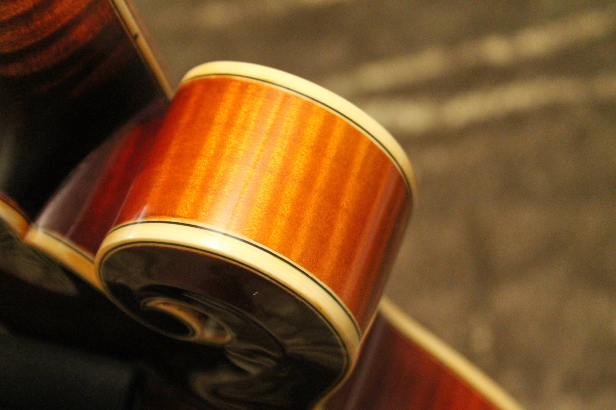 Side bound/triple ply ivroid/black/ivoriod binding on top, back, fingerboard and peghead